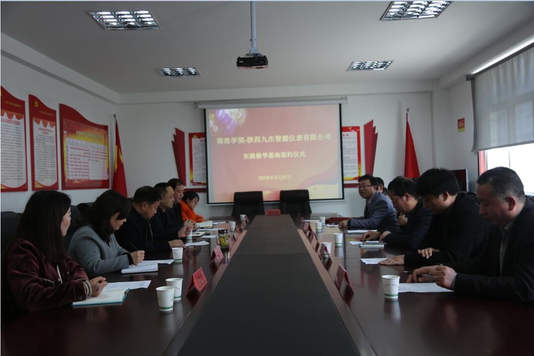 3月22日,商洛学院教务处处长李超,电信学院党总支书记李英、院长袁训锋、副院长刘爱军、副院长.副书记陈垚及教师王博一行赴商洛市山阳县与陕西九杰智能仪表有限公司举行商洛学院—陕西九杰智能仪器仪表有限公司实践教学基地举行深度合作签字仪式。陕西九杰公司总经理毛加兴,山阳县域工业集中区管委会主任崔新成、副主任杨生山,山阳县科教局副局长杨有琴等领导参加了仪式。