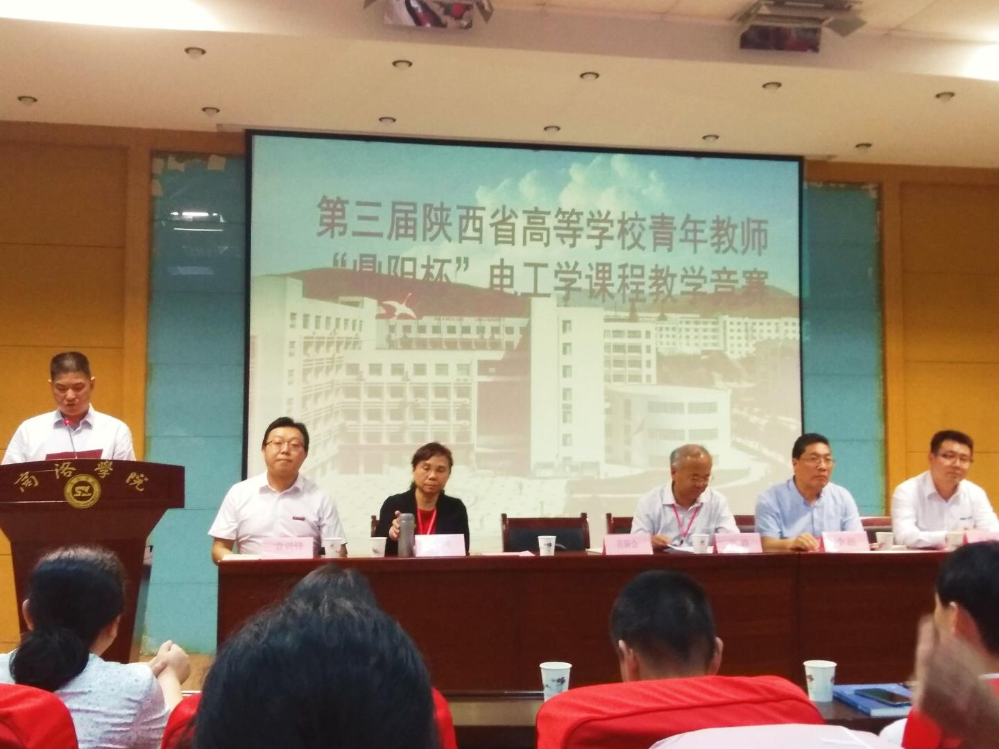 6月21日下午,陕西省第三届高等学校青年教师“鼎阳杯”电工学课程教学竞赛活动开幕式在我校图书馆1楼报告厅举行,本次活动由陕西省电工学研究会主办、商洛学院承办、深圳市鼎阳科技有限公司协办。商洛学院校长范新会教授、教务处处长李超教授、陕西省电工学研究会理事长李晔、陕西省电工学研究会理事蔡理、深圳市鼎阳科技有限公司经理解超刚出席了会议,全体参赛教师、电信学院全体教师及学生代表近200人参加了启动仪式。开幕式由电信学院院长袁训锋主持。