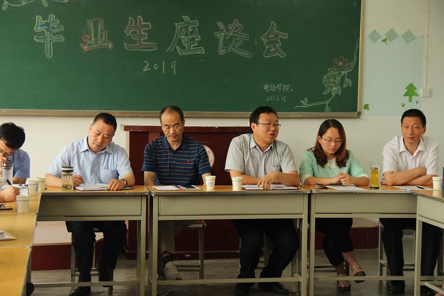 6月25日,电信学院在2-215教室召开2019届毕业生座谈会。党总支书记李英、院长袁训锋、副院长刘爱军等党政领导、班主任代表、毕业班辅导员与24名毕业生代表共聚一堂,畅所欲言。本次座谈会由电信学院学工办主任陈倩主持。
