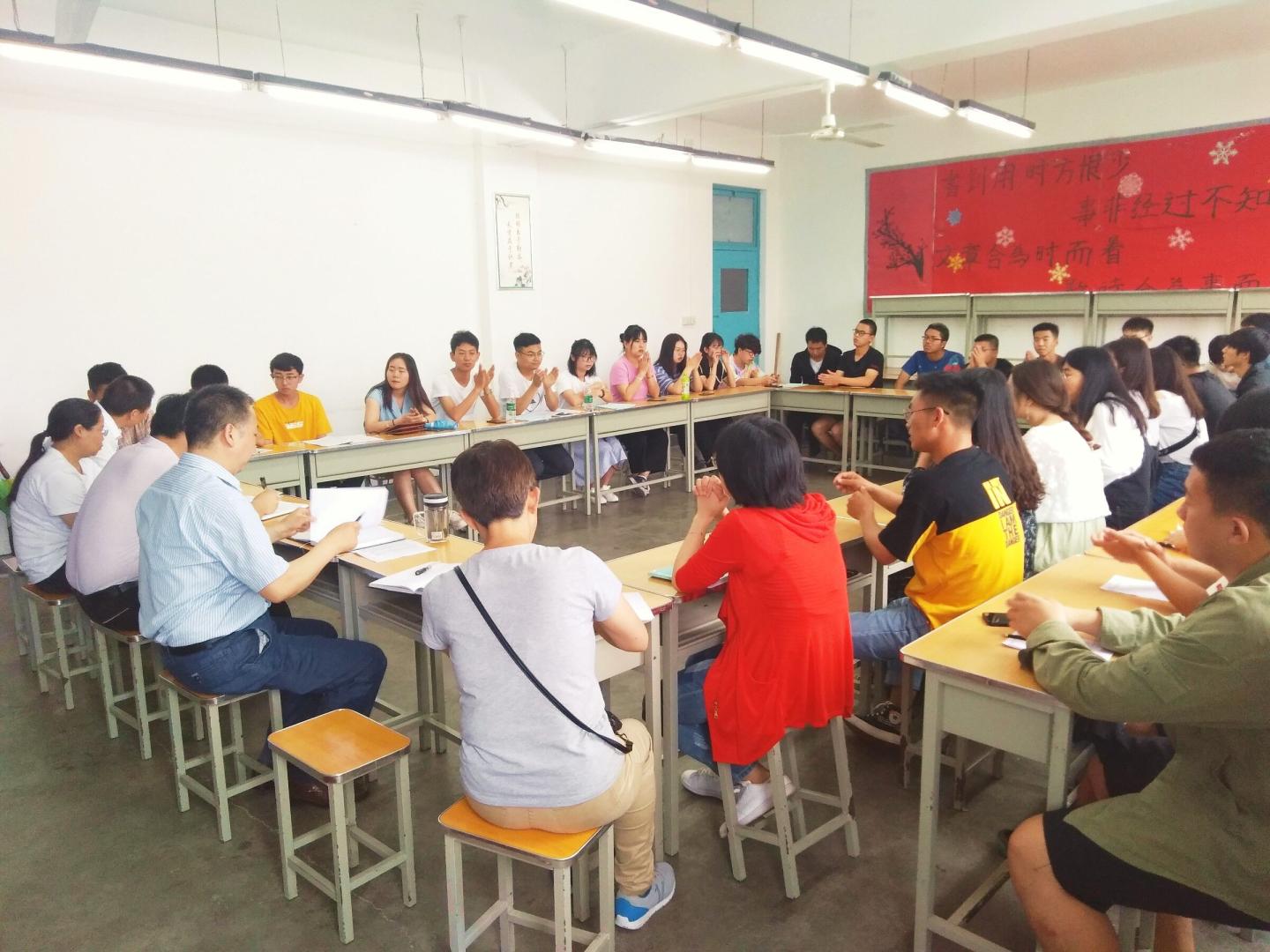 同学们交流结束,刘爱军在讲话中对顶岗实习学生的返校表示热烈的欢迎,对顶岗实习过程中学生们的实习表现表示十分满意,充分肯定了学生们在顶岗实习工作中所体现的积极乐观、吃苦耐劳、阳光自信的精神态度。同时,就本学期返校后两周学生的学习任务做了相应的工作安排。