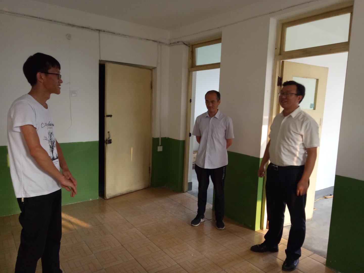 8月25日下午,电信学院院领导袁训锋、李英、刘爱军、陈垚一行深入新进博士谭小东老师校内住房看望谭小东博士,并与谭小东亲切交谈,详细了解其在住宿、工作及生活等方面的情况,并对其表达了关心和鼓励。谭小东博士对学校及学院各方面均很满意,表示愿意以更饱满的热情积极投入到学院的教学科研工作中,为学院和学校的发展做出积极的贡献。