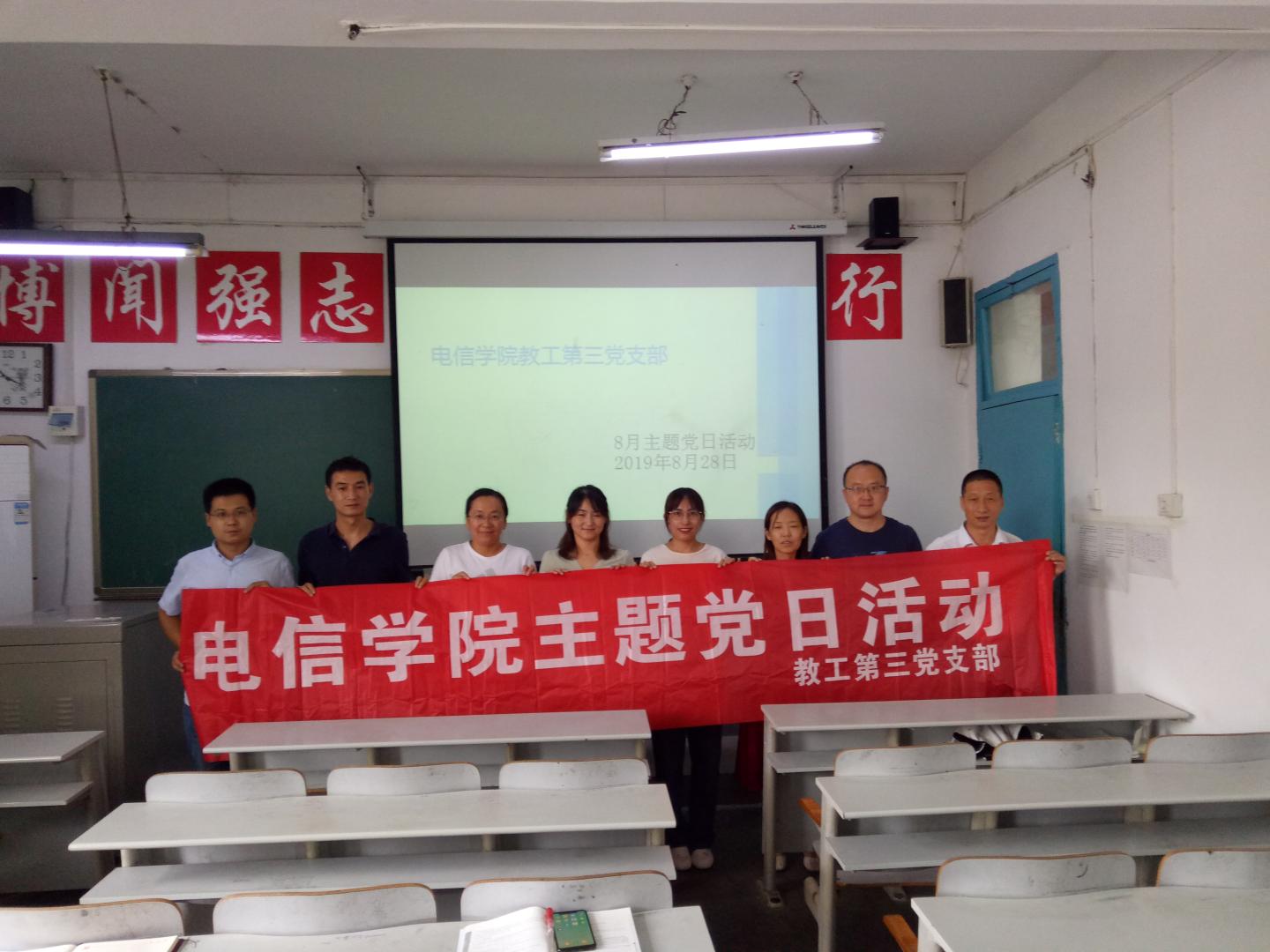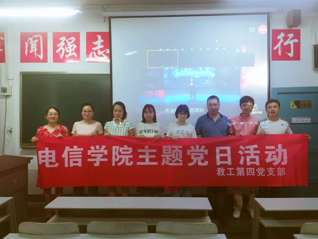 8月28日下午,电信学院各党支部分别举行“增强四个自信,坚定理想信念”主题党日教育活动。支部全体党员观看了复旦大学教授张维为主讲的《中国重返世界之巅》视频。观看视频结束,各支部广大党员展开热烈的讨论交流。从祖国经济发展、政治改革、社会进步等方面取得的巨大成就以及对世界经济社会发展所作的卓越贡献,进一步说明中国道路和中国模式具有西方国家无法比拟的众多的优势。通过学习,全体党员进一步增强了四个自信,坚定了理想信念。结合学校“新学期、新气象、新目标、新作为”,全体党员一致认为,要努力做好本职工作,以优异成绩迎接新中国成立70周年。