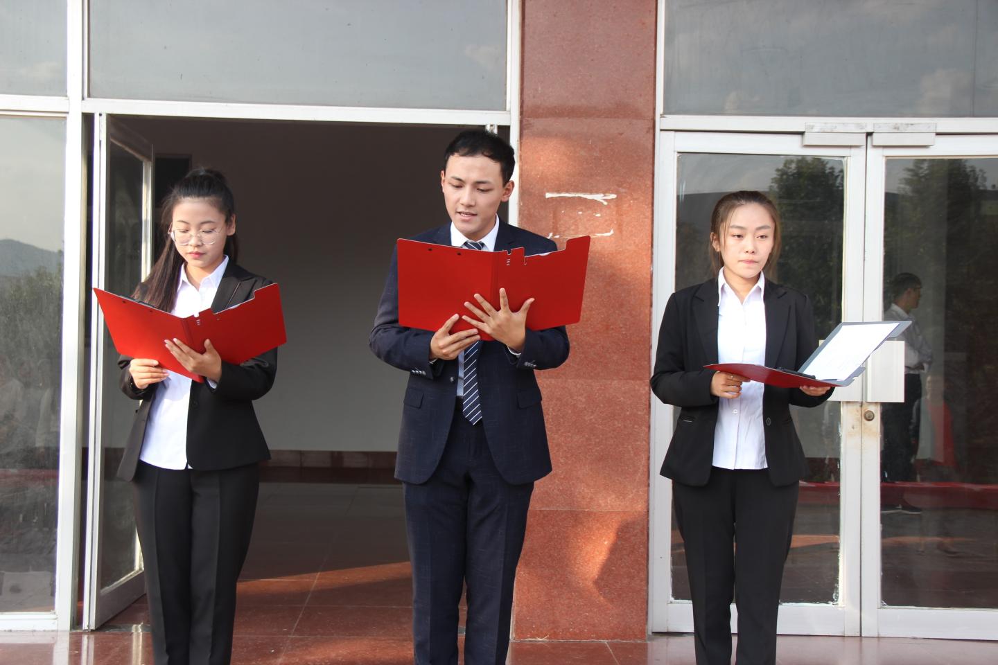 为庆祝新中国成立70周年,表达爱国热情,弘扬爱国精神,9月29日下午,电信学院于2号楼前隆重举行了“庆祝中华人民共和国成立70周年”诵读活动。院党总支书记李英、团总支书记沈光美带领电信专业19级新生一同参与此次活动。