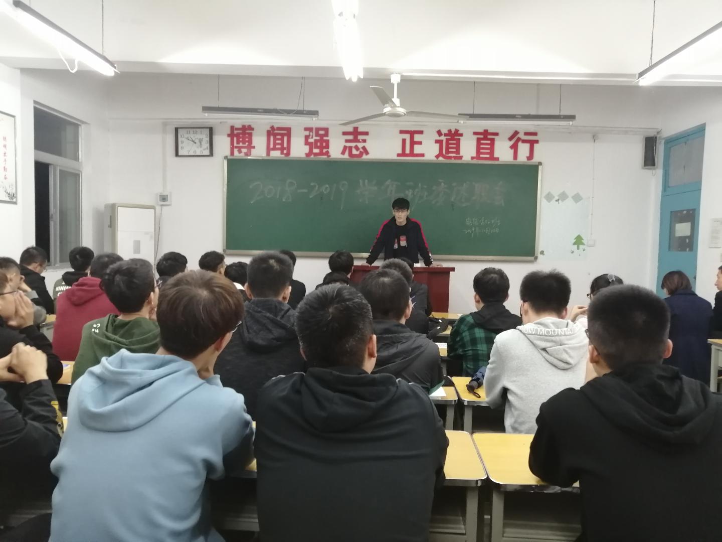 为了总结工作经验,进一步增强班团干部工作能力,10月10日晚,电信1802班在2-215教室举行了班团干部任职一年工作述职测评大会。会议由辅导员任艳老师主持。班主任杨延锋老师出席了本次会议。电信1802班34名同学参加了会议。