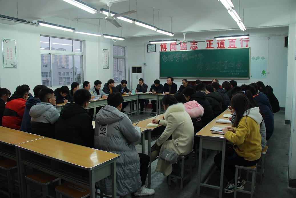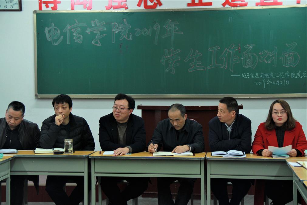 为更好解决我院学生在学习生活中遇到的问题,加强师生间交流,推进电信学院更好发展,11月27日,电信学院在2#215教室举办2019年学生工作面对面座谈交流活动。院党总支书记李英、院长袁训锋、副院长刘爱军、副院长.副书记陈垚、院党政办主任杨延锋、学工办主任陈倩、教学秘书刘俊、全体辅导员及30多名学生代表齐聚一堂,进行了面对面倾心交流。