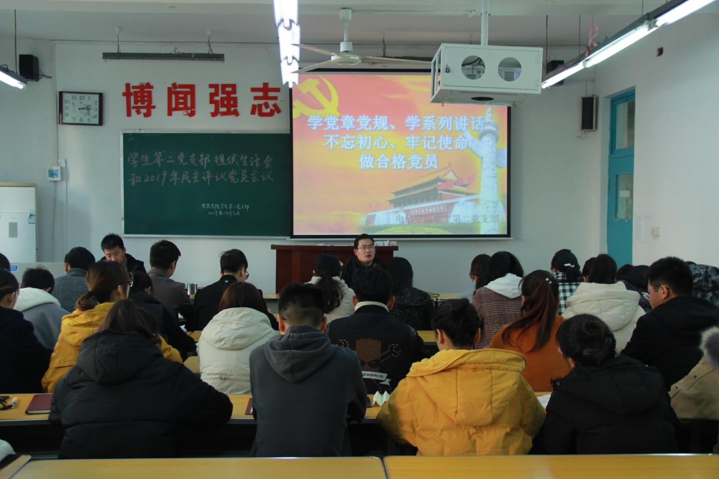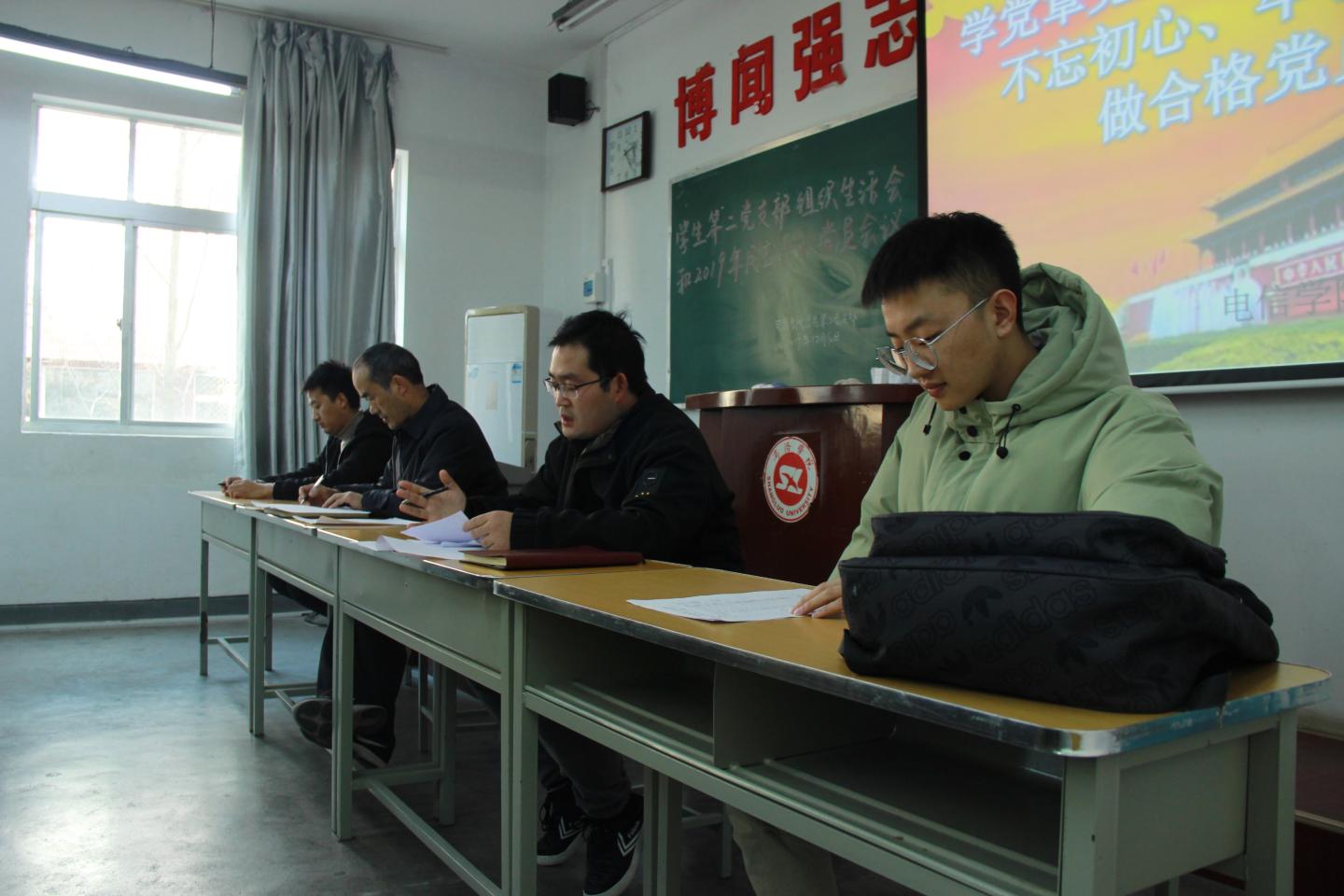 按照我校党委组织部文件精神和学院党总支统一安排,12月5日下午,电信学院学生第二党支部召开主题为“学党章党规,学系列讲话,‘不忘初心、牢记使命’,做合格党员”的组织生活会和2019年民主评议党员会。我院党总支书记李英出席并指导会议召开。会议由支部书记唐龙龙主持。支部全体党员参加了会议。