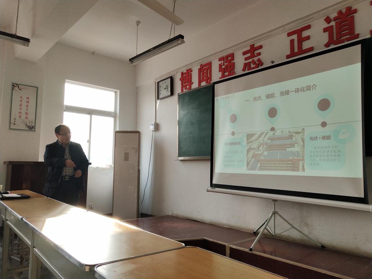 12月6日下午,电信学院2019年学术年会专场报告会在二号楼215教室召开。本次会议邀请陕西科技大学副教授、硕士研究生导师、电气工程系副主任陈景文为大家作题为“光储一体化系统应用案例分析”的专题报告。报告会由院长袁训锋主持,电信学院全体教师听取了学术报告。