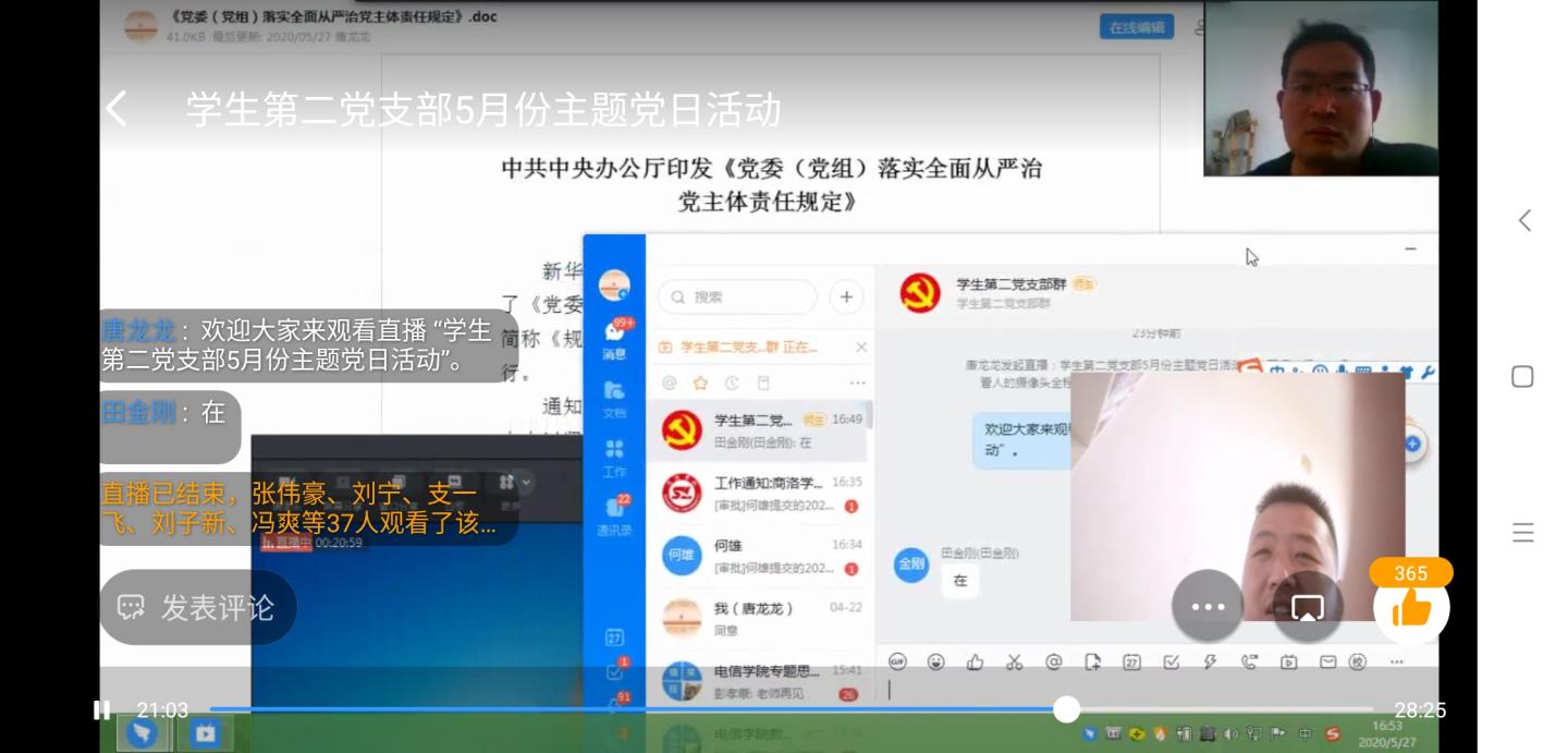 按照学校组织部和党总支统一安排,5月27日下午,电信学院6个党支部结合实际分别采取线下线上方式开展主题党日学习交流活动。主要学习习近平总书记来陕重要讲话精神及中共中央办公厅印发的《党委(党组)落实全面从严治党主体责任规定》(以下简称《规定》)。该活动由各党支部书记主持。全体党员参加了学习交流。