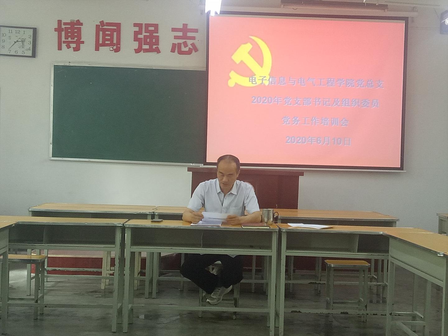 为了不断提高我院党支部书记及组织委员的党建工作能力和理论水平,按照党总支学习计划安排,6月8日至6月10日,电信学院举办了2020年度党支部书记及组织委员集中培训。培训分为两个阶段,6月8日至9日,为自学阶段,培训学员主要自学《中共商洛学院委员会党费收缴使用管理实施细则》、《中共商洛学院委员会主题党日制度实施细则》两个文件;6月10日为集中培训阶段。10日下午2:30,党总支在2-215教室举行了集中培训会。院党总支书记李英、院长.副书记袁训锋、副书记.副院长陈垚3位同志分别作了专题培训报告。会议由党总支委员杨延锋同志主持。全体党支部书记、组织委员参加了本次培训会。