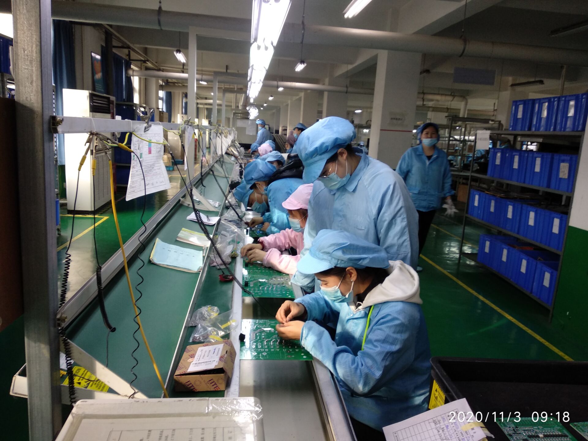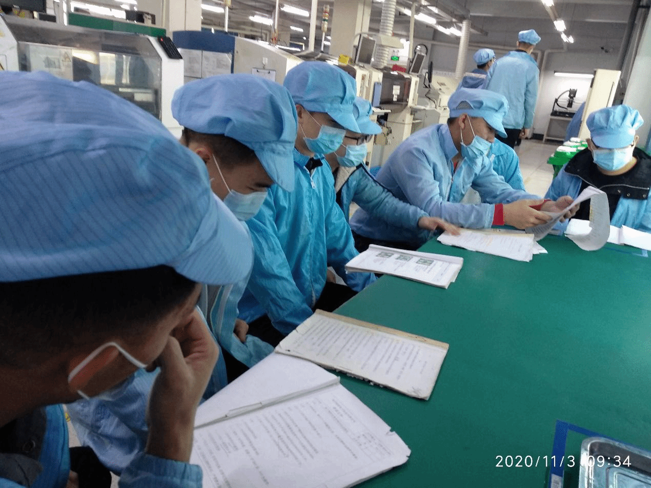 从11月3日上午8时开始,学生们开始了正式入厂实习。每天早上,学生们首先进行测体温等防疫工作,然后身着统一的工作服、工作帽和防静电鞋,按顺序进入车间,按照师傅的安排进入生产线,并在师傅的指导下认真进行当天的工作任务。