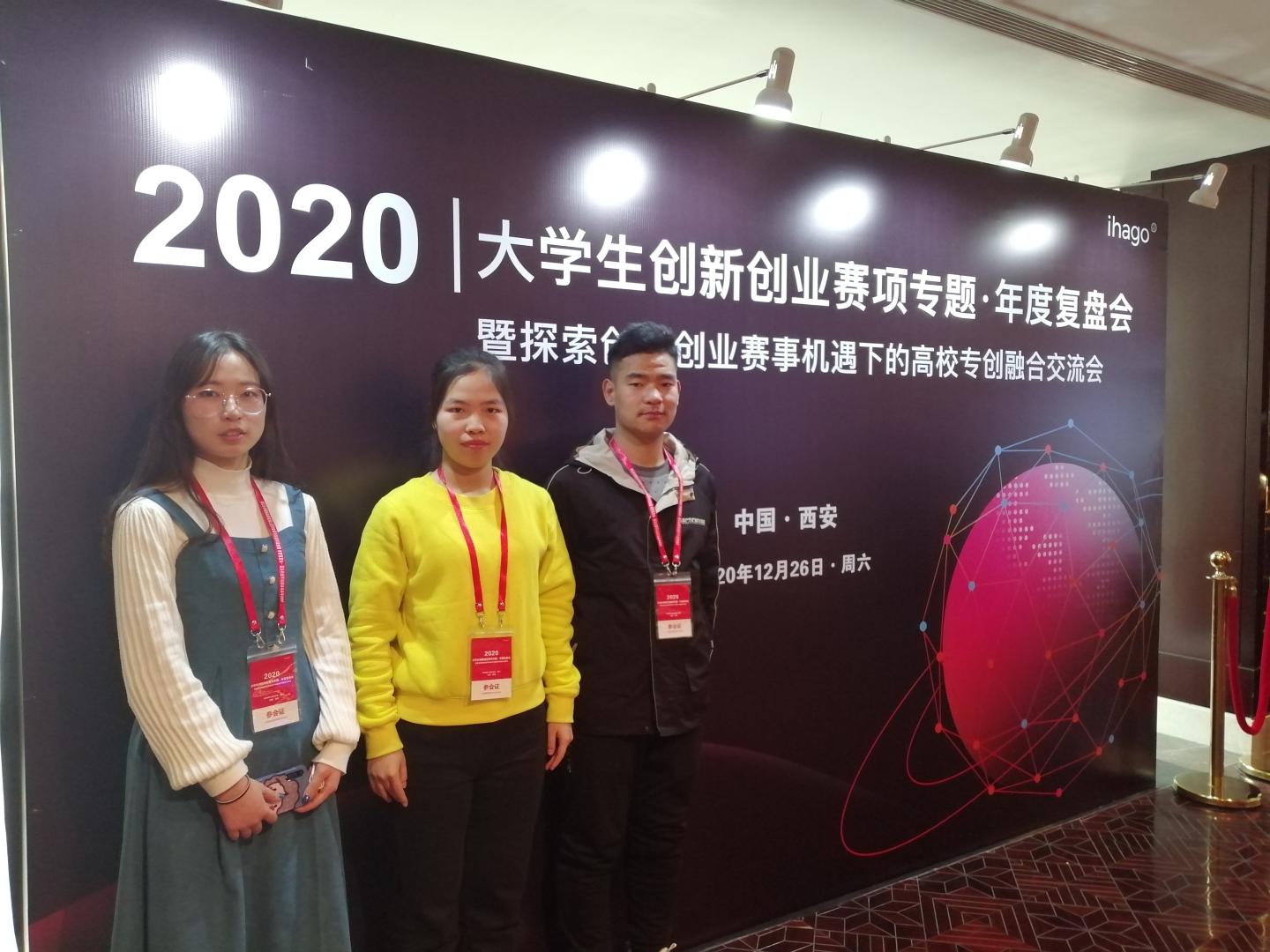 12月26日,我院电信1902胡桂驰、电气1904王森、物理1901樊艳三名同学在西安参加由“IHAGO创导赛事学院”组织的2020大学生创新创业专题·年度复盘会。