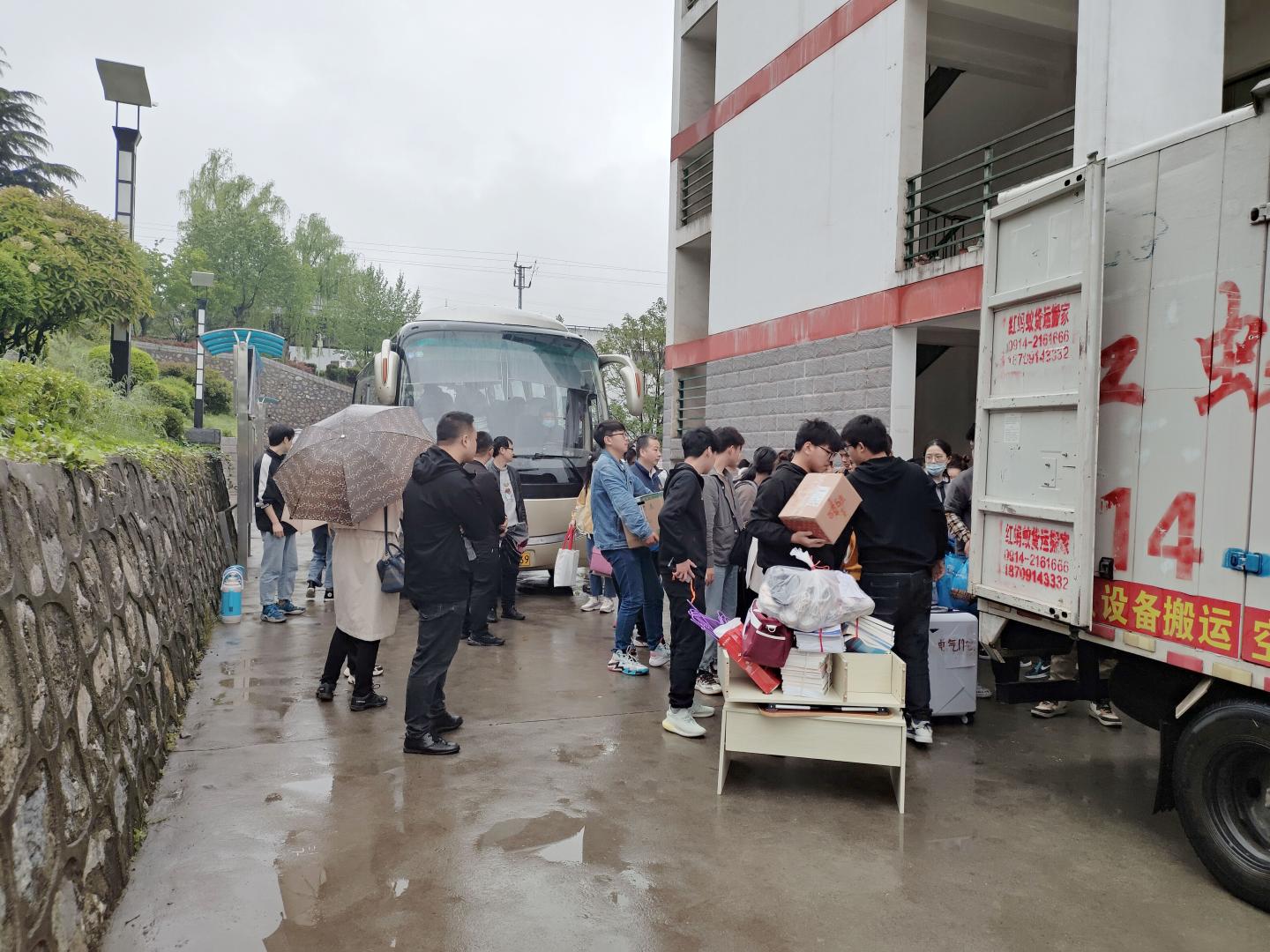 搬迁过程中,学院领导带领志愿者按照年级、专业、宿舍编号的方式有序地进行搬迁工作,化材学院、生物学院等兄弟学院积极组织100余名志愿者同学在丹江校区进行接车和搬卸行李。在志愿者们齐心协力、科学有序、安全高效的帮助下,电信学院顺利完成了学生宿舍整体搬迁工作。学校各级领导及学院领导老师亲临现场指导工作并对志愿者的辛勤工作表示诚挚的问候与衷心的感谢。