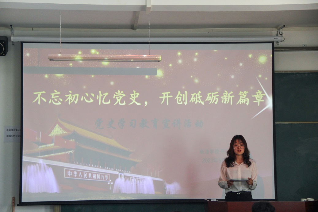 为积极响应党中央的号召,认真贯彻执行校党委和团委对团学干部学党史的要求,5月12日下午,电信学院团总支联合化材学院团总支、生物学院团总支共同在丹江校区多媒体3举办了“不忘初心忆党史 开创砥砺新篇章”为主题的党史学习宣讲会。宣讲会由电信学院团总支组织部副部长王雨彤主持。电信学院、化材学院、生物学院的18、19级各班团支部书记、副书记参加了此次会议。