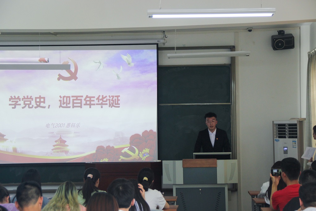 会议在嘹亮的国歌声中拉开了帷幕。首先,由化材学院化学2002班的隽骄阳同学通过PPT讲解和视频资源播放相结合的方式带领与会的党团干部一起回顾了党的光辉历程,让大家更加明白了“只有共产党才能救中国”“没有共产党就没有新中国”的真谛。随后,电气2001班惠钰乐同学作“学党史 迎百年华诞”主题演讲,声情并茂向大家介绍了中国共产党从成立之初到走向新时代的初心与使命,使同学们对中国共产党有了更深入的了解。接着,食品2001班刘嘉璇同学作题目为“中国共产党人最有理由自信”的党史报告,从党的百年光辉历程与历史贡献两方面,讲述了在中国共产党领导下中国特色社会主义的蓬勃生机与获得的国际赞誉。最后,由王雨彤总结并宣布会议结束。