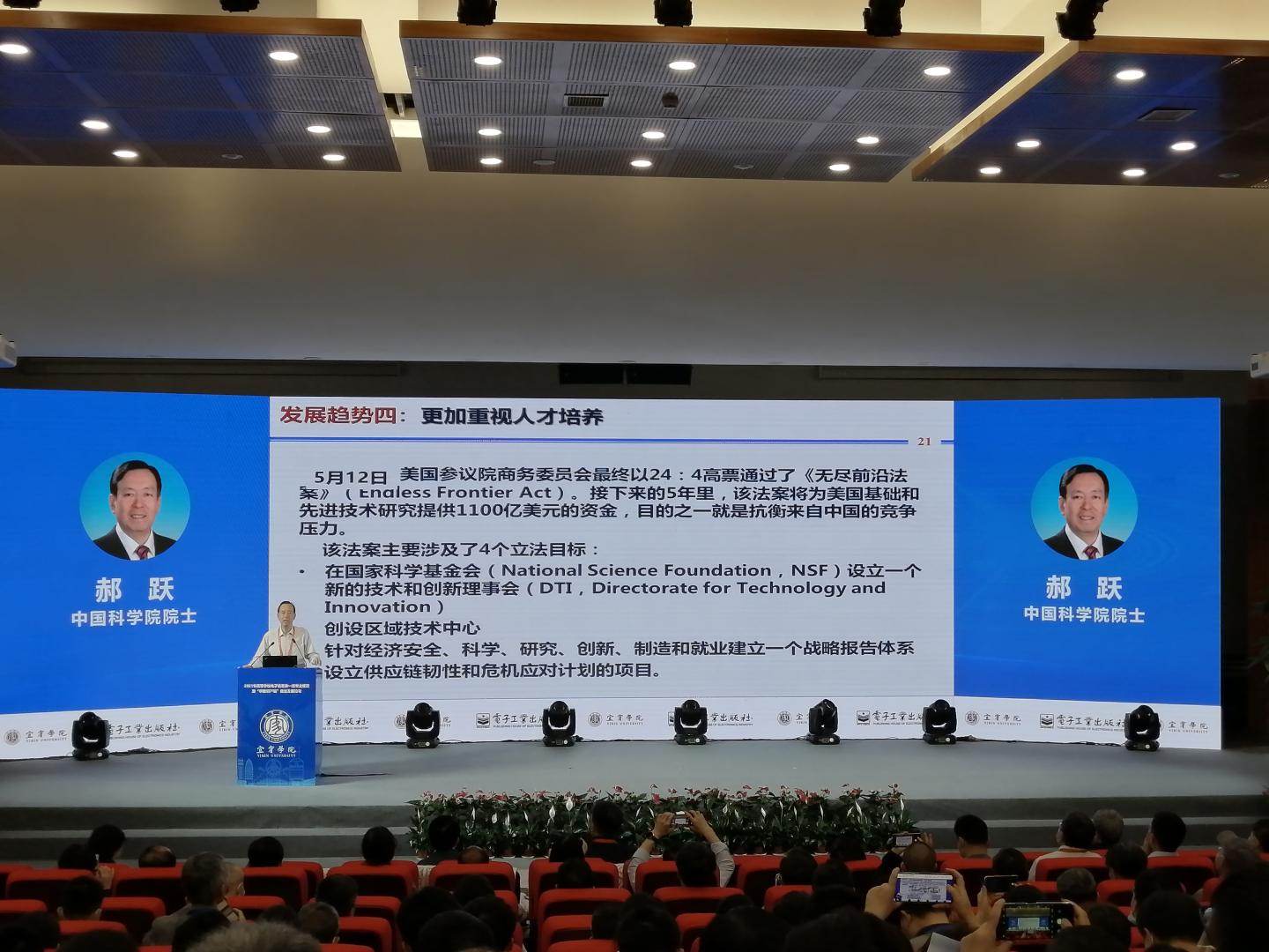 5月22日-23日,由教育部高等学校电子信息类专业教学指导委员会主办,宜宾学院和电子工业出版社联合承办的高等学校电子信息类一流专业建设暨“学教研产城”融合发展论坛在宜宾学院临港校区举行。中国科学院院士、教指委主任委员郝跃,中国科学院院士吴一戎、黄维,中国工程院院士何友、张平及36位教指委委员出席论坛,和来自全国各大高校的500余名教师共商电子信息类专业发展大计。郝跃、吴一戎、黄维、张平院士做主旨报告,12位专家学者分别围绕一流专业、一流课程、课程思政、新工科和现代产业学院建设做专题报告。我院教学秘书刘俊、电科系主任何建强参加了会议。
