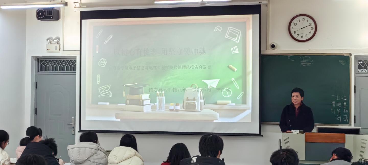 为强化物理教育专业学生的师德修养与教学实践能力,12月18日,电信学院精心组织开展师德师风专题报告会暨物理系教育见习活动。活动特别邀请陕西省乡村科技教育先进典型周眈宏老师、商洛市“最美乡村教师”宁江娥老师,商洛市优秀教育工作者徐亮老师做专题报告。物理系教师和24级学生参与此次会议。