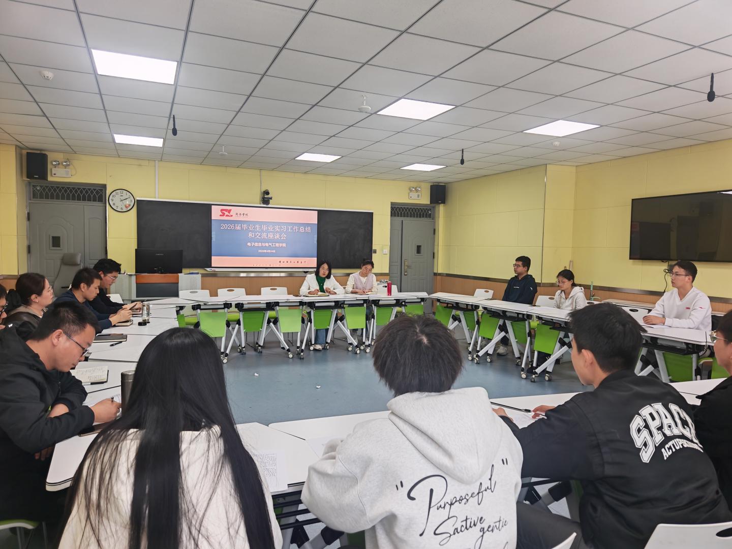 为全面复盘2026届毕业生毕业实习工作成效,梳理实践教学管理经验,完善实习运行机制,持续提升应用型人才培养质量,4月24日下午,电信学院在3-308教室召开2026届毕业生毕业实习工作总结交流座谈会。学院教学副院长李亚文、教学秘书楚冰清、各系主任、毕业实习指导教师及学生代表参会,会议由楚冰清主持。
