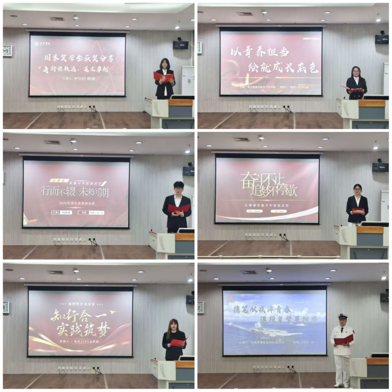 宣讲环节,国家奖学金获得者潘欣蕾、国家励志奖学金获得者田家谋、筑梦奖学金获得者孟欣雨、优秀学生干部梁丽丽、十佳大学生杨高梓楠、优质兵员储备基地训管骨干杨元元等六名优秀学子登台分享,从不同角度讲述了个人在攀登路上的心得与感悟,他们用实际行动诠释了何为“有理想、敢担当、能吃苦、肯奋斗”的新时代青年品质。