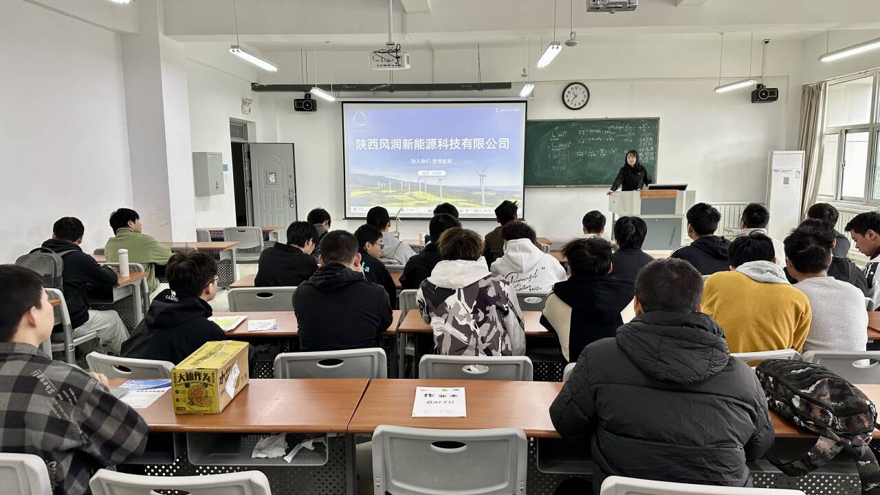 为进一步推进2026届毕业生就业工作,10月21日,我院特邀校企合作企业——陕西风润新能源科技有限公司前来举办专场招聘宣讲会,我院毕业班辅导员和40余名毕业生参加此次活动。